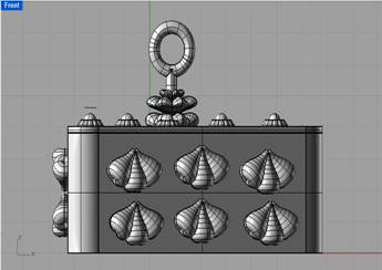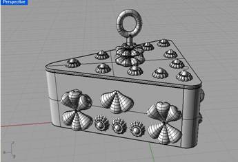 實體長x寬x高 4.5x5x5.5 厚度約2mm 作品是課程金屬藝術設計與應用的rp輸出與應用所需之作品 Rp輸出後鑄造成金屬已經翻鑄為塑膠材質之頸飾 |