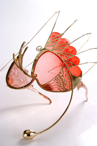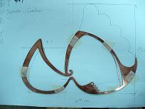 使用銅管連接銅線焊接,以蝴蝶的觸鬚當意象,做成捲曲造型。