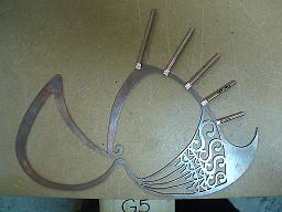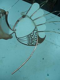 紅銅線鋸鏡框與五個金屬管(管口2mm處鋸成半圓形)焊接。