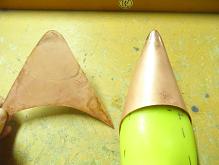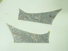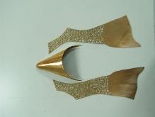 照紙模切鋸銅片,並適當斷敲出弧度