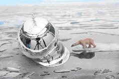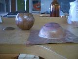 | 5.將圓表面用粗砂紙﹙約100﹚號大致磨平,並參考先前製作的一比一模型以油土雕塑圓下溶化感覺的形體。 |