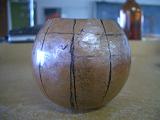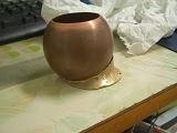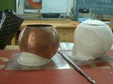 3.慢慢將銅板鍛敲成圓體。並利用畫在圓上的輔助線慢慢將其整平及塑形。 |