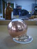 | 9.將蓋子有焊接點的地方用立可白、鳥飼料即耐火石棉防護好,填上白色琺瑯到想要的位置,進爐燒製後進行整體表面磨光處理。 |