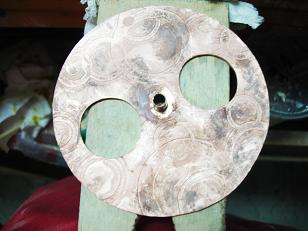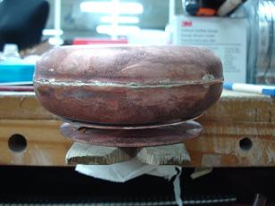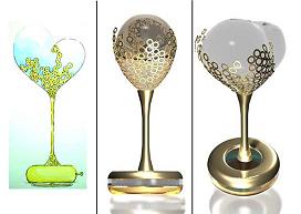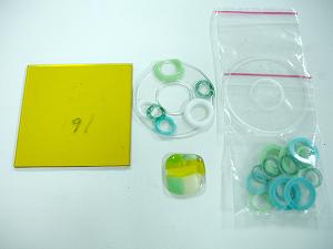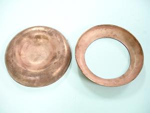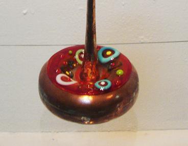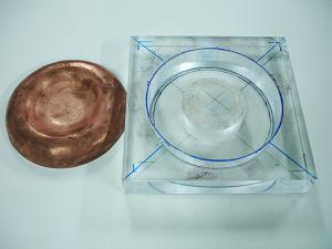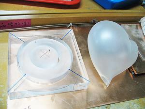 翻心型形狀的玻璃的耐火石膏模,在模具裡焊圈上去形成包覆玻璃的金屬圈燈罩。