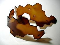 鏤空好的板片與半六角形盒子連結,並焊上夾住壓克力的小板片