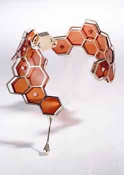 壓克力跟金屬板片鋸一樣的形狀,並熱塑成符合頸部的弧度