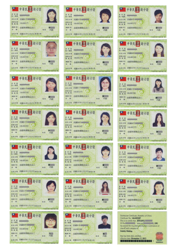 本課程已輔導23人報考國家職訓局2012金銀珠寶飾品加工丙級技能檢定,共20人榮獲檢定通過